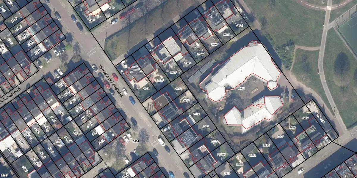 Gebruik de zoekbalk of klik op een perceel om informatie over het perceel te bekijken.