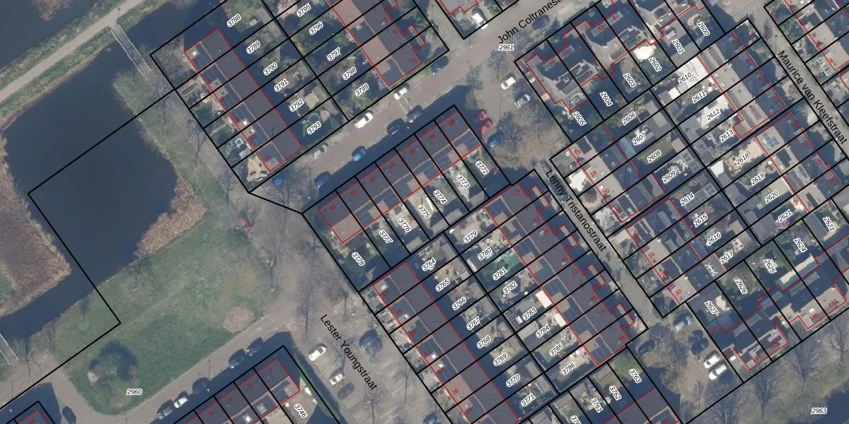 Gebruik de zoekbalk of klik op een perceel om informatie over het perceel te bekijken.