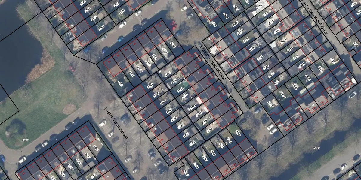 Gebruik de zoekbalk of klik op een perceel om informatie over het perceel te bekijken.