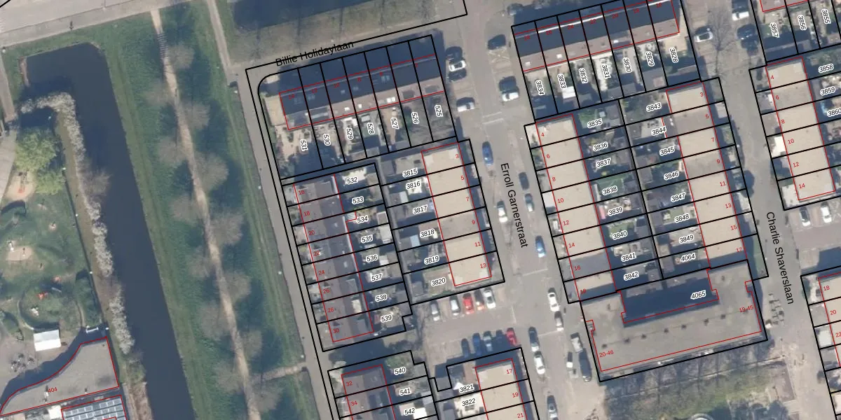 Gebruik de zoekbalk of klik op een perceel om informatie over het perceel te bekijken.