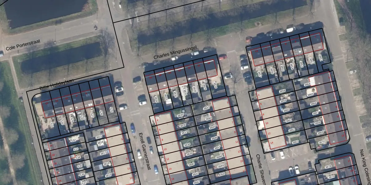 Gebruik de zoekbalk of klik op een perceel om informatie over het perceel te bekijken.