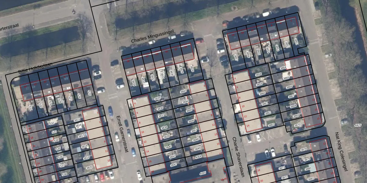 Gebruik de zoekbalk of klik op een perceel om informatie over het perceel te bekijken.
