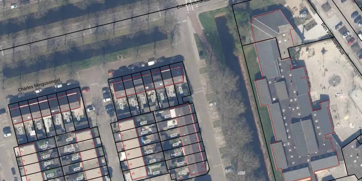 Gebruik de zoekbalk of klik op een perceel om informatie over het perceel te bekijken.