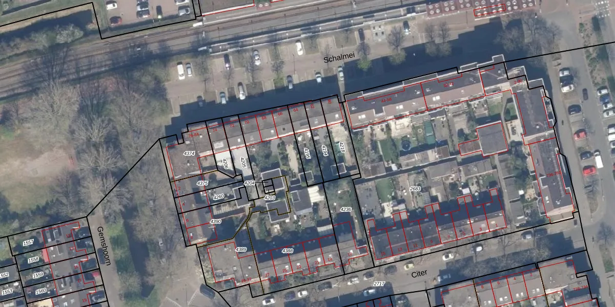 Gebruik de zoekbalk of klik op een perceel om informatie over het perceel te bekijken.