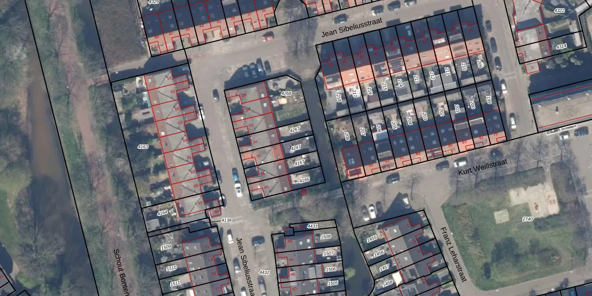 Gebruik de zoekbalk of klik op een perceel om informatie over het perceel te bekijken.