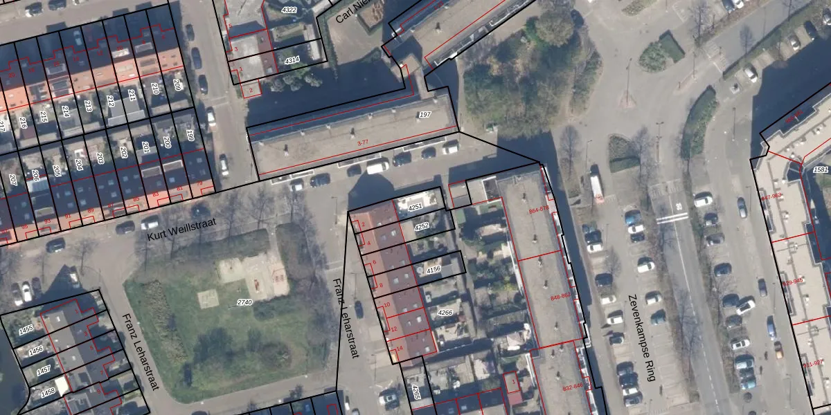 Gebruik de zoekbalk of klik op een perceel om informatie over het perceel te bekijken.