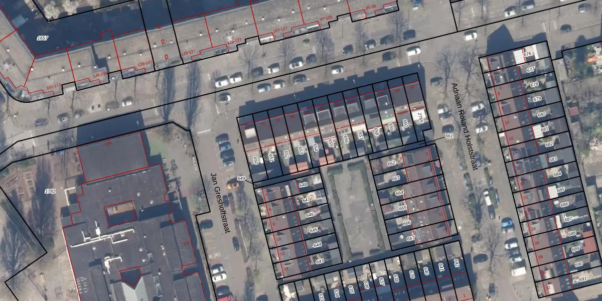 Gebruik de zoekbalk of klik op een perceel om informatie over het perceel te bekijken.