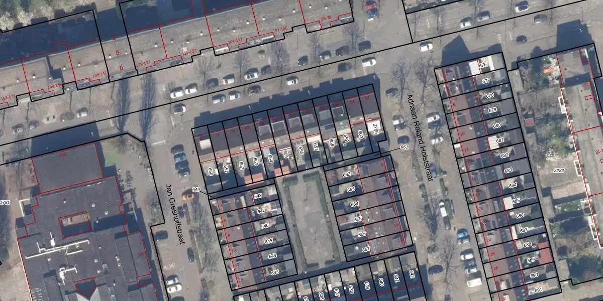 Gebruik de zoekbalk of klik op een perceel om informatie over het perceel te bekijken.
