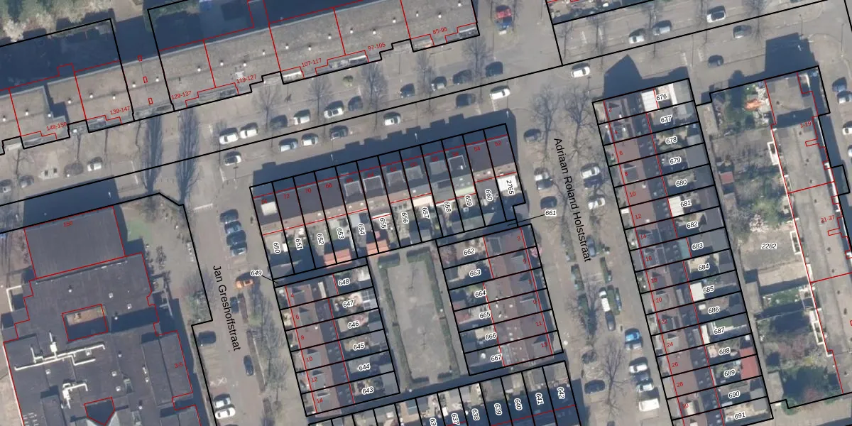 Gebruik de zoekbalk of klik op een perceel om informatie over het perceel te bekijken.