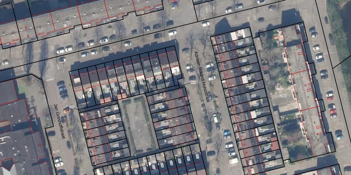 Gebruik de zoekbalk of klik op een perceel om informatie over het perceel te bekijken.
