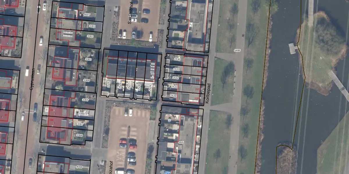 Gebruik de zoekbalk of klik op een perceel om informatie over het perceel te bekijken.