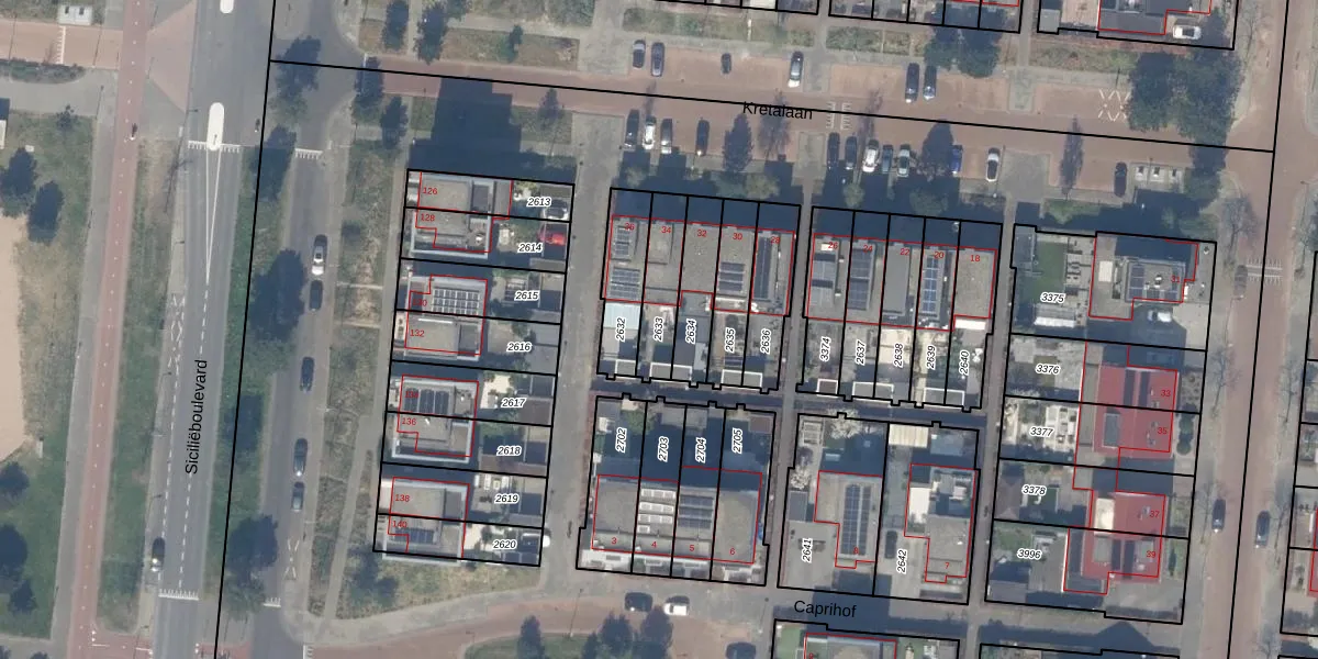 Gebruik de zoekbalk of klik op een perceel om informatie over het perceel te bekijken.