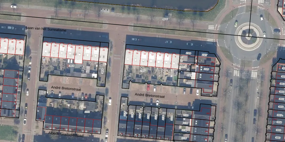 Gebruik de zoekbalk of klik op een perceel om informatie over het perceel te bekijken.