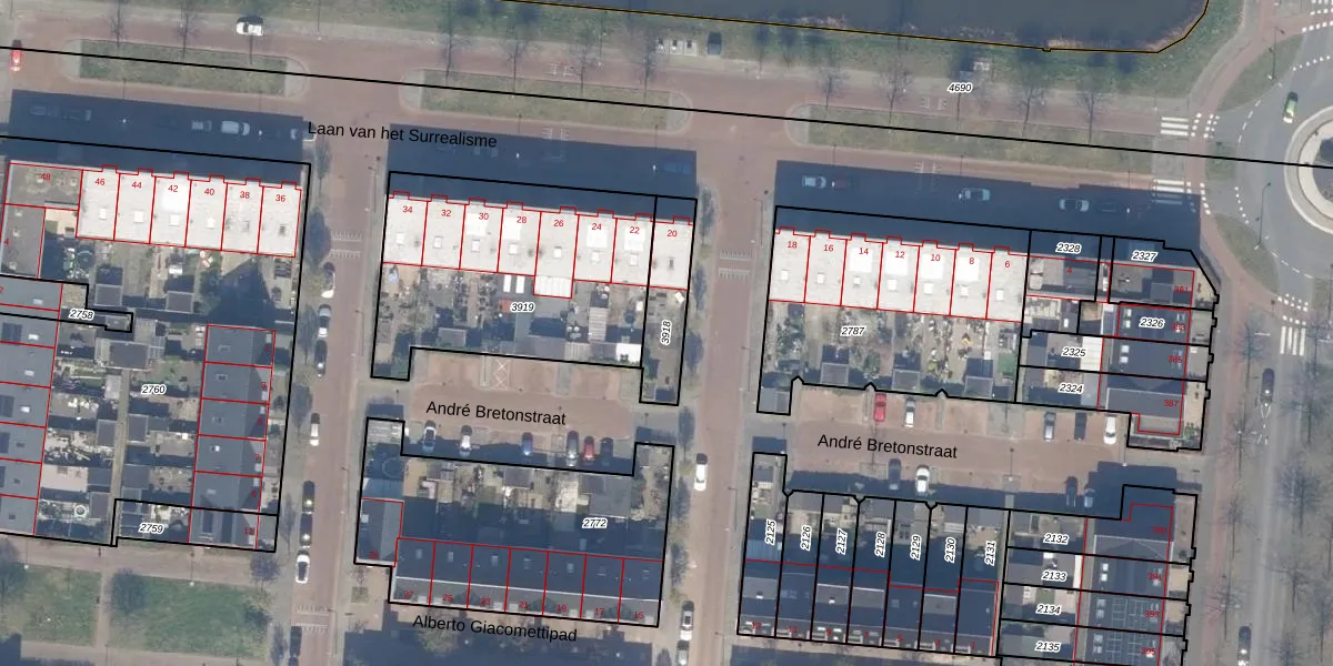 Gebruik de zoekbalk of klik op een perceel om informatie over het perceel te bekijken.