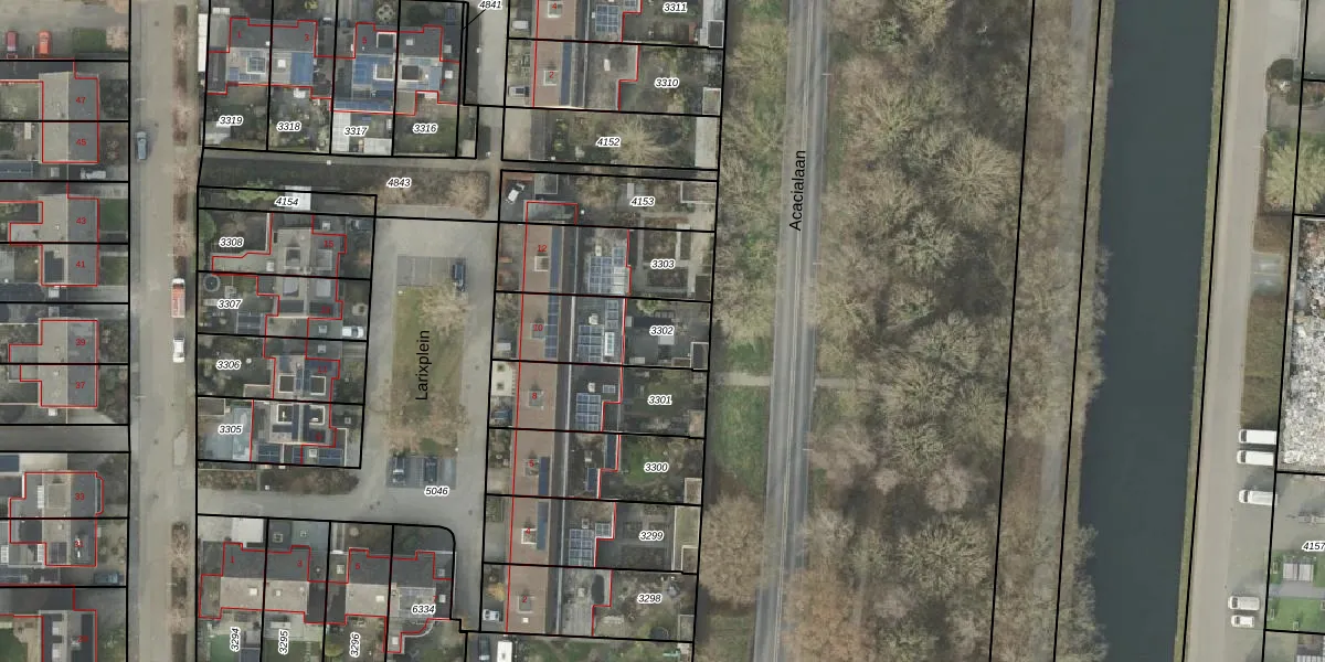 Gebruik de zoekbalk of klik op een perceel om informatie over het perceel te bekijken.