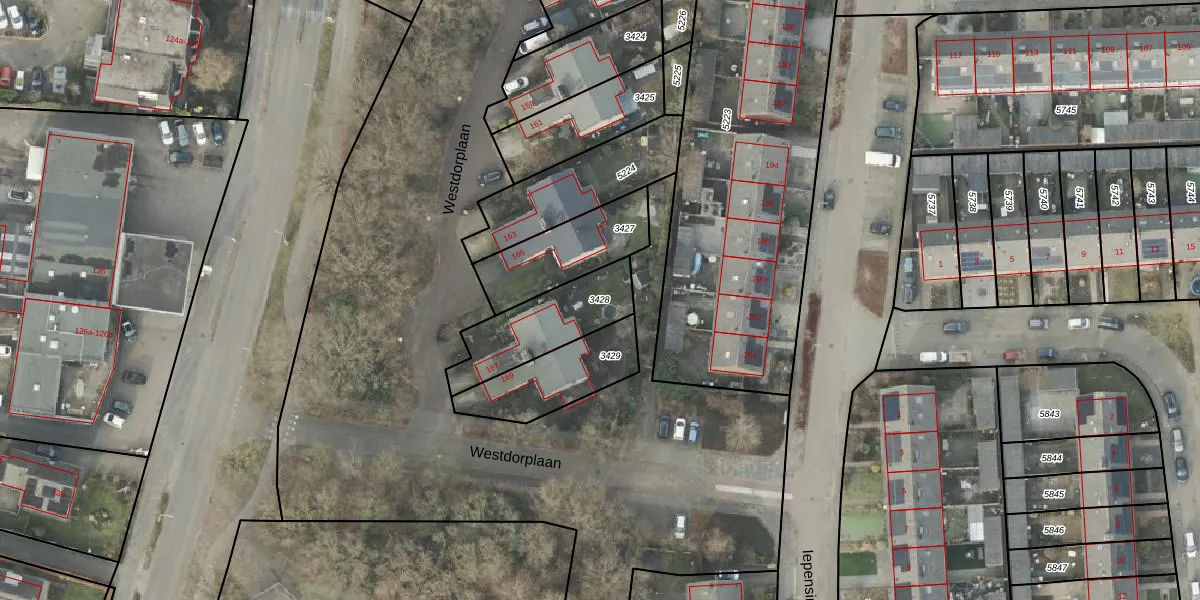 Gebruik de zoekbalk of klik op een perceel om informatie over het perceel te bekijken.