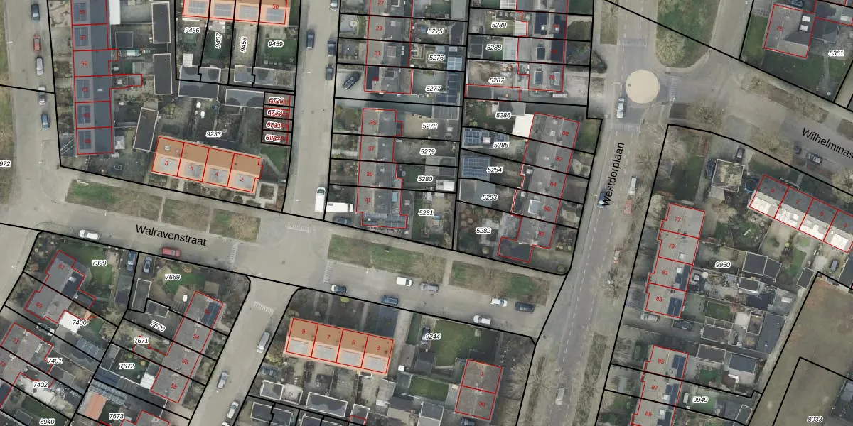Gebruik de zoekbalk of klik op een perceel om informatie over het perceel te bekijken.