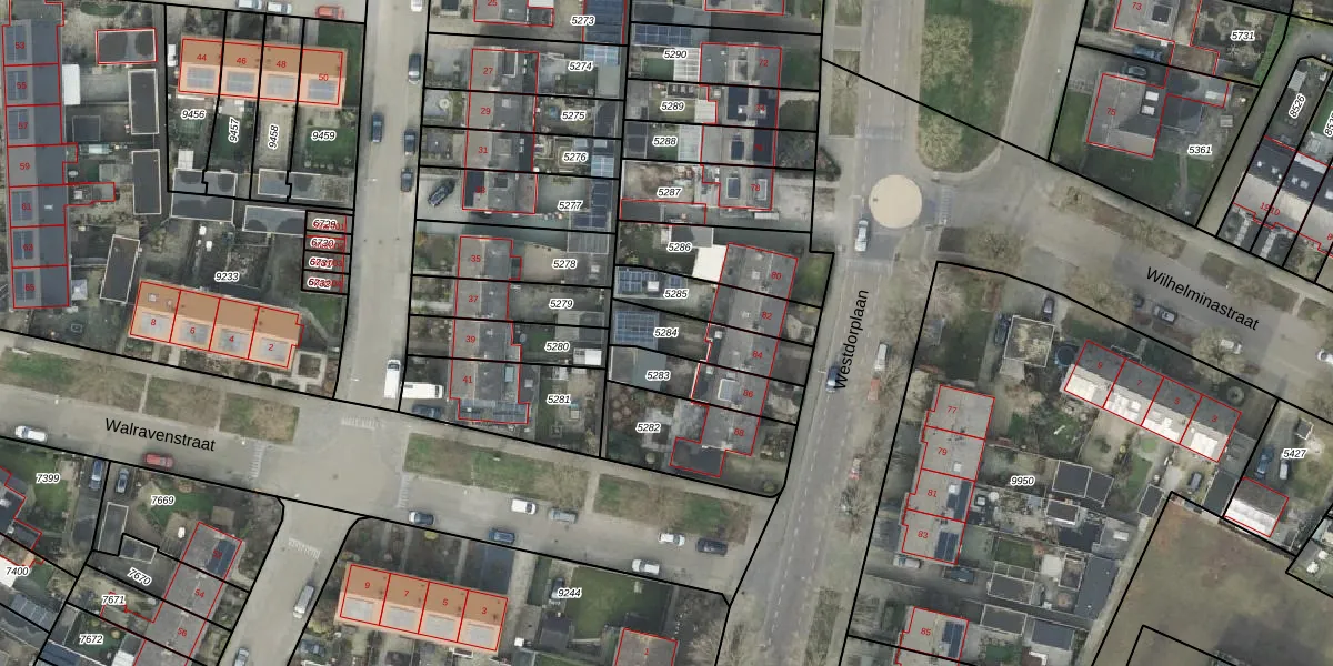 Gebruik de zoekbalk of klik op een perceel om informatie over het perceel te bekijken.