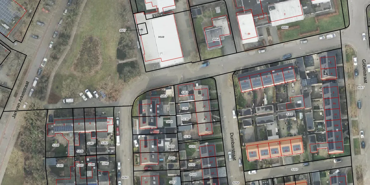 Gebruik de zoekbalk of klik op een perceel om informatie over het perceel te bekijken.