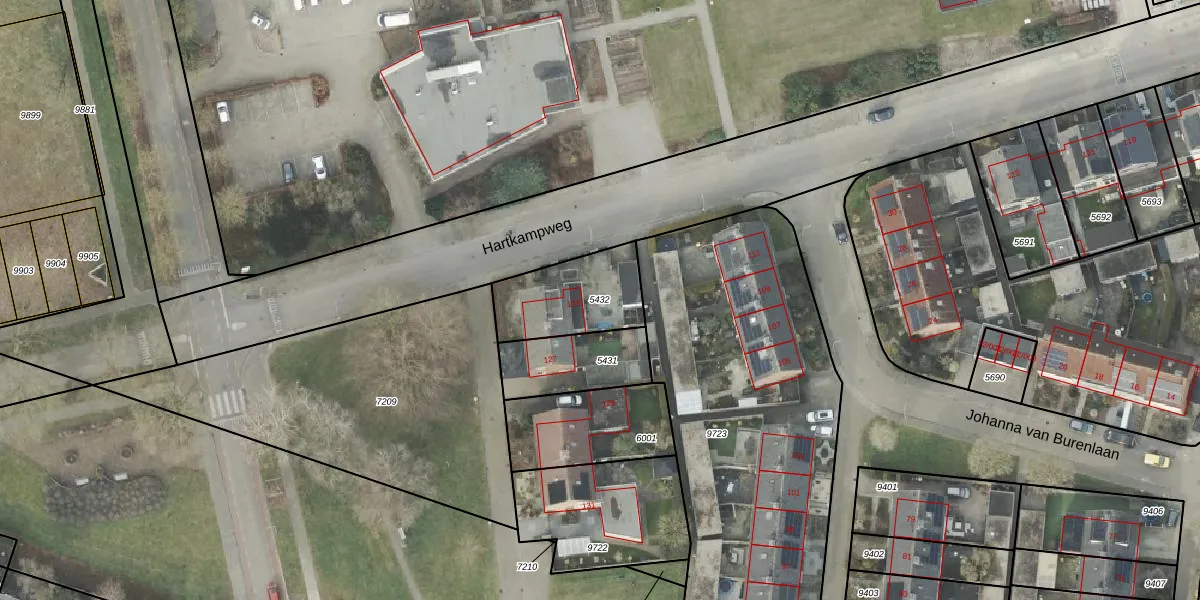 Gebruik de zoekbalk of klik op een perceel om informatie over het perceel te bekijken.