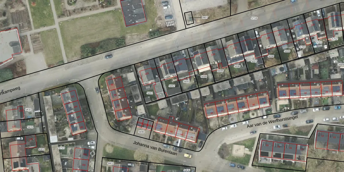 Gebruik de zoekbalk of klik op een perceel om informatie over het perceel te bekijken.