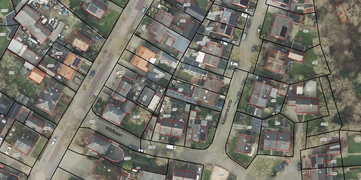 Gebruik de zoekbalk of klik op een perceel om informatie over het perceel te bekijken.