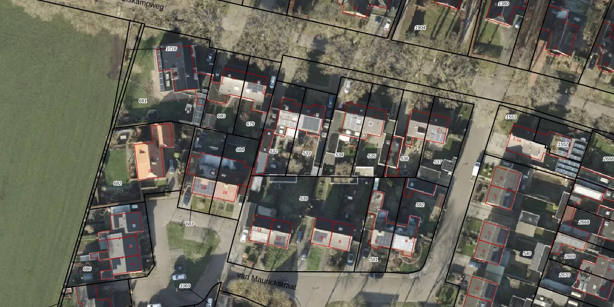 Gebruik de zoekbalk of klik op een perceel om informatie over het perceel te bekijken.
