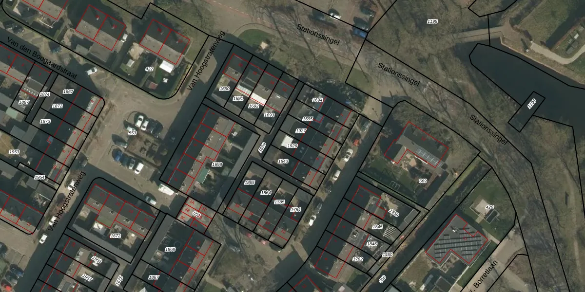 Gebruik de zoekbalk of klik op een perceel om informatie over het perceel te bekijken.