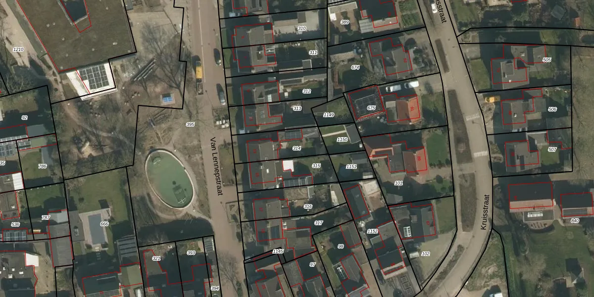 Gebruik de zoekbalk of klik op een perceel om informatie over het perceel te bekijken.