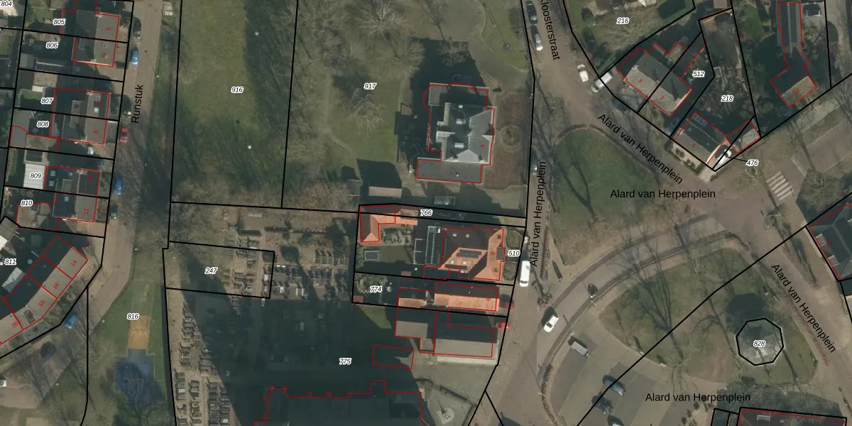 Gebruik de zoekbalk of klik op een perceel om informatie over het perceel te bekijken.