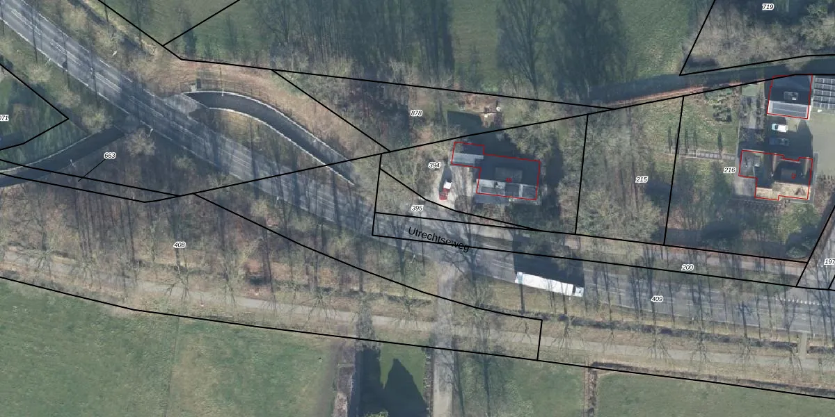 Gebruik de zoekbalk of klik op een perceel om informatie over het perceel te bekijken.