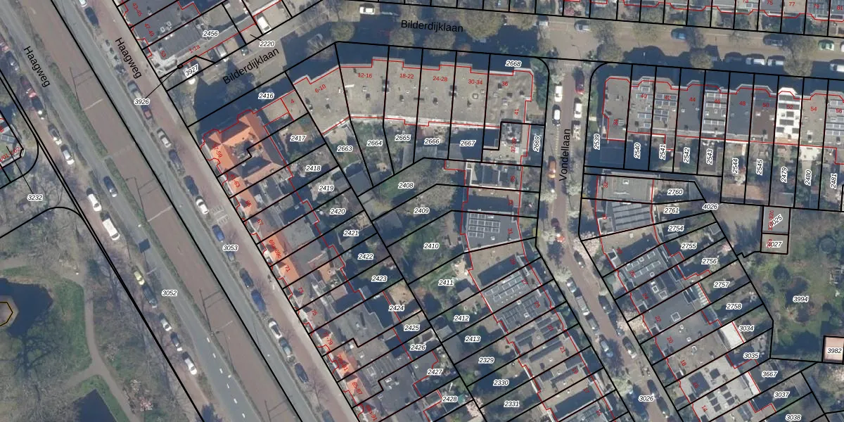 Gebruik de zoekbalk of klik op een perceel om informatie over het perceel te bekijken.