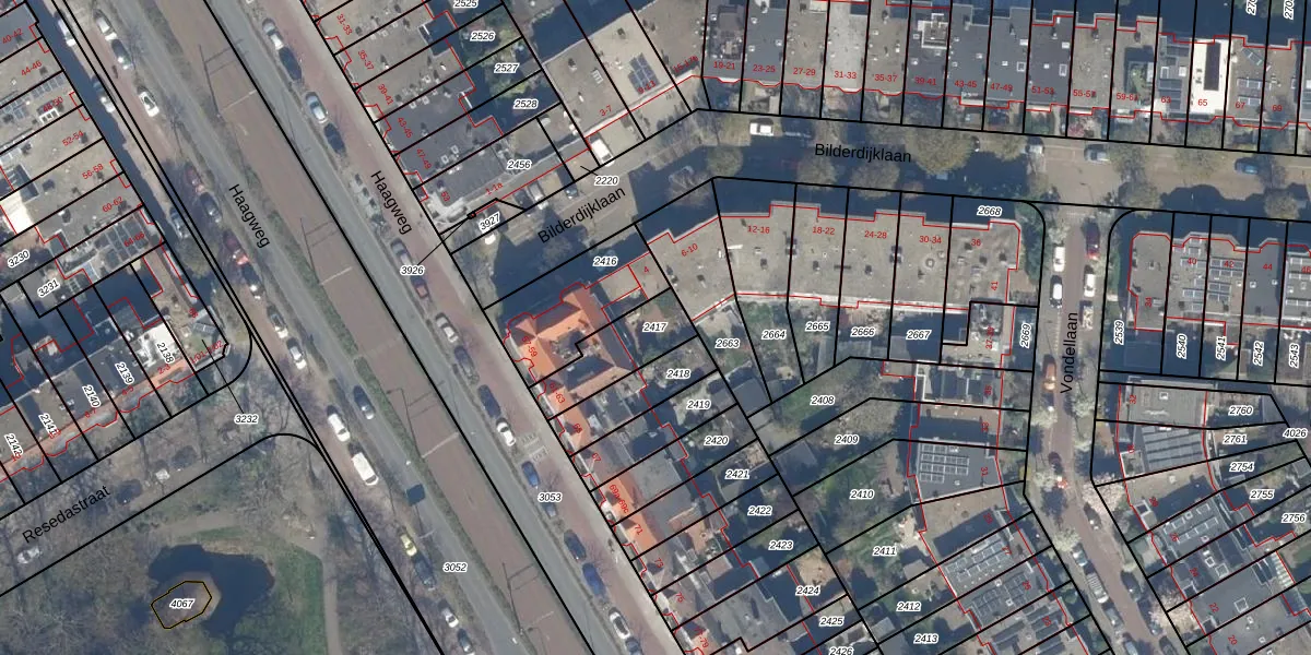 Gebruik de zoekbalk of klik op een perceel om informatie over het perceel te bekijken.