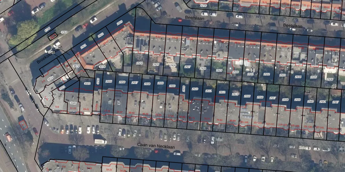 Gebruik de zoekbalk of klik op een perceel om informatie over het perceel te bekijken.