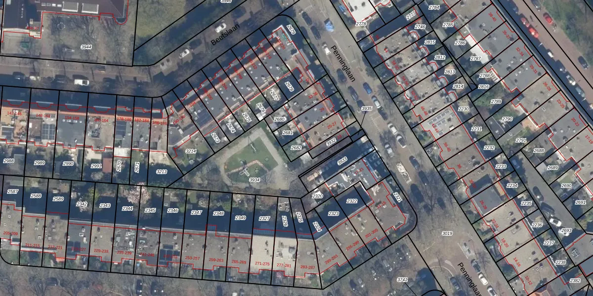 Gebruik de zoekbalk of klik op een perceel om informatie over het perceel te bekijken.