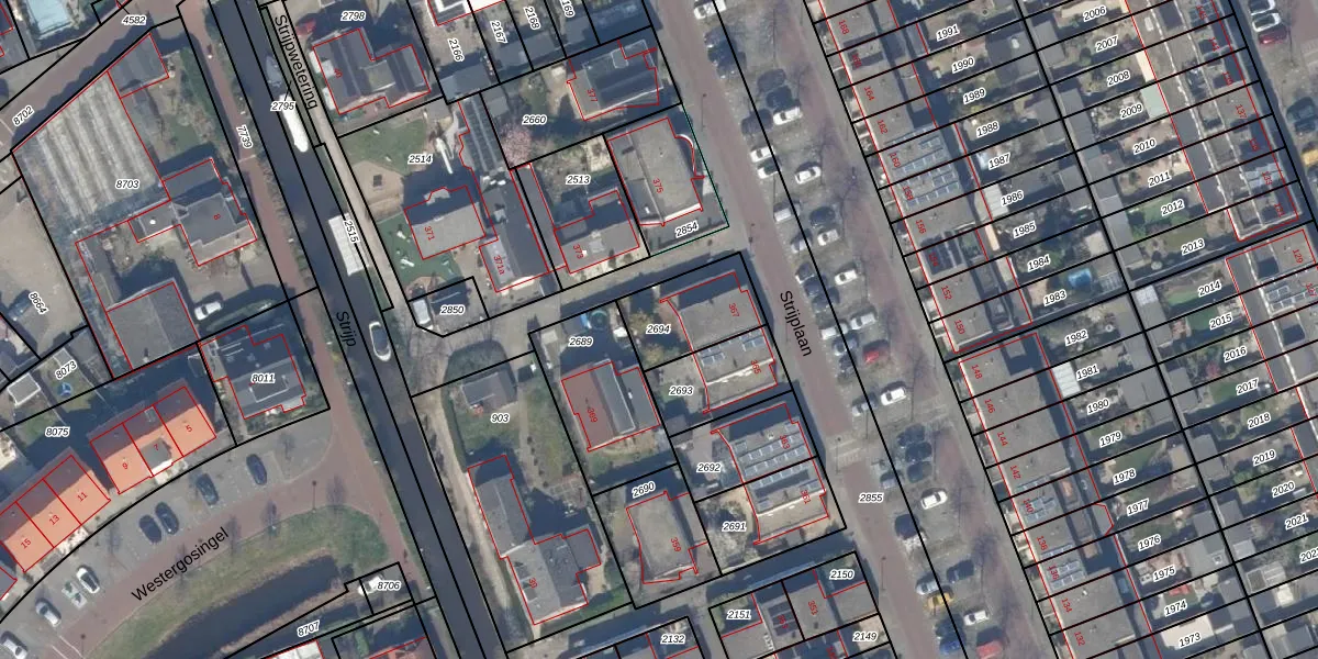 Gebruik de zoekbalk of klik op een perceel om informatie over het perceel te bekijken.
