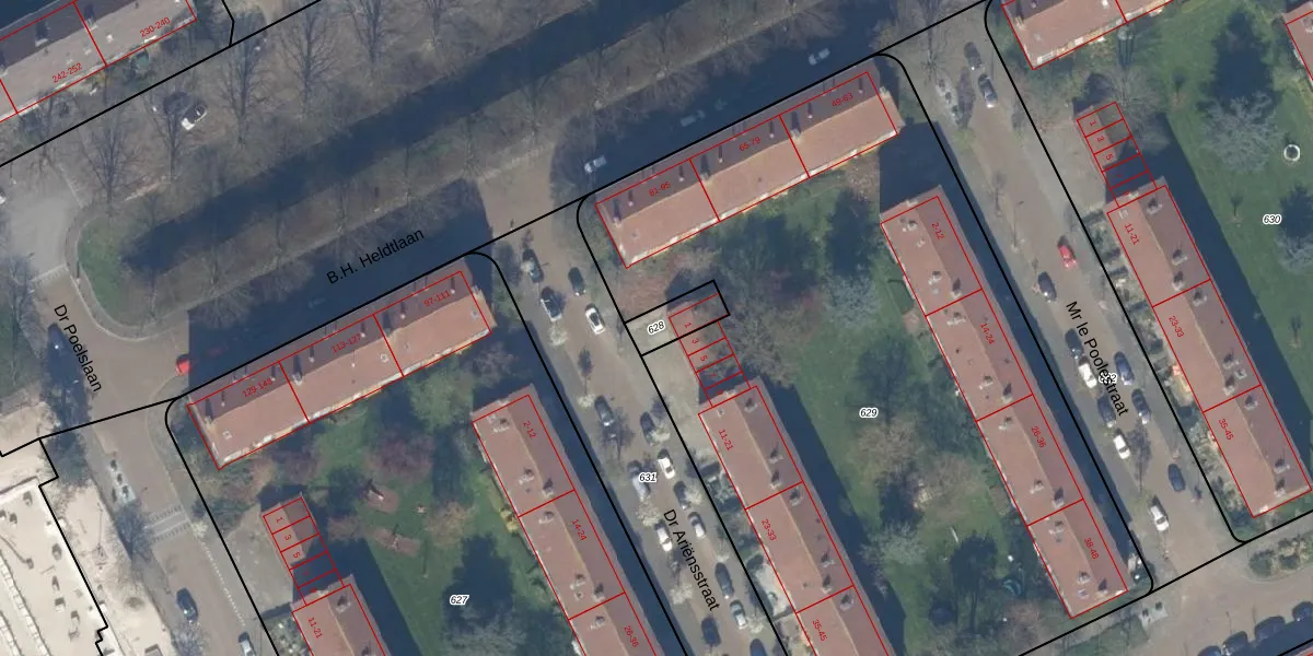 Gebruik de zoekbalk of klik op een perceel om informatie over het perceel te bekijken.