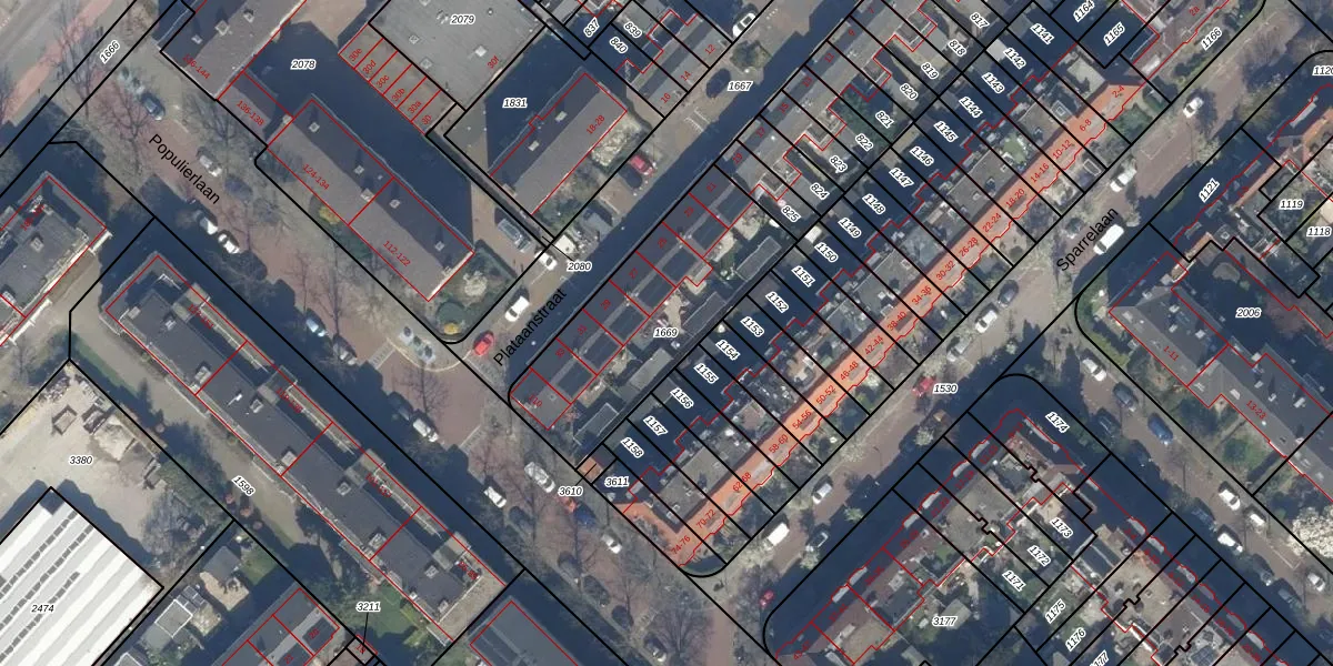 Gebruik de zoekbalk of klik op een perceel om informatie over het perceel te bekijken.