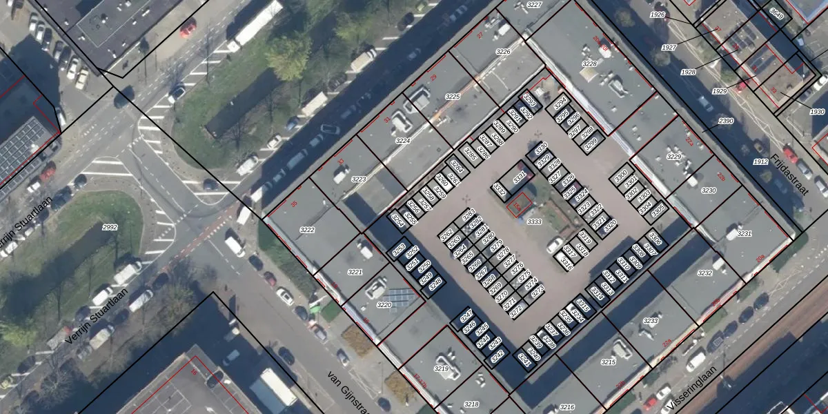 Gebruik de zoekbalk of klik op een perceel om informatie over het perceel te bekijken.
