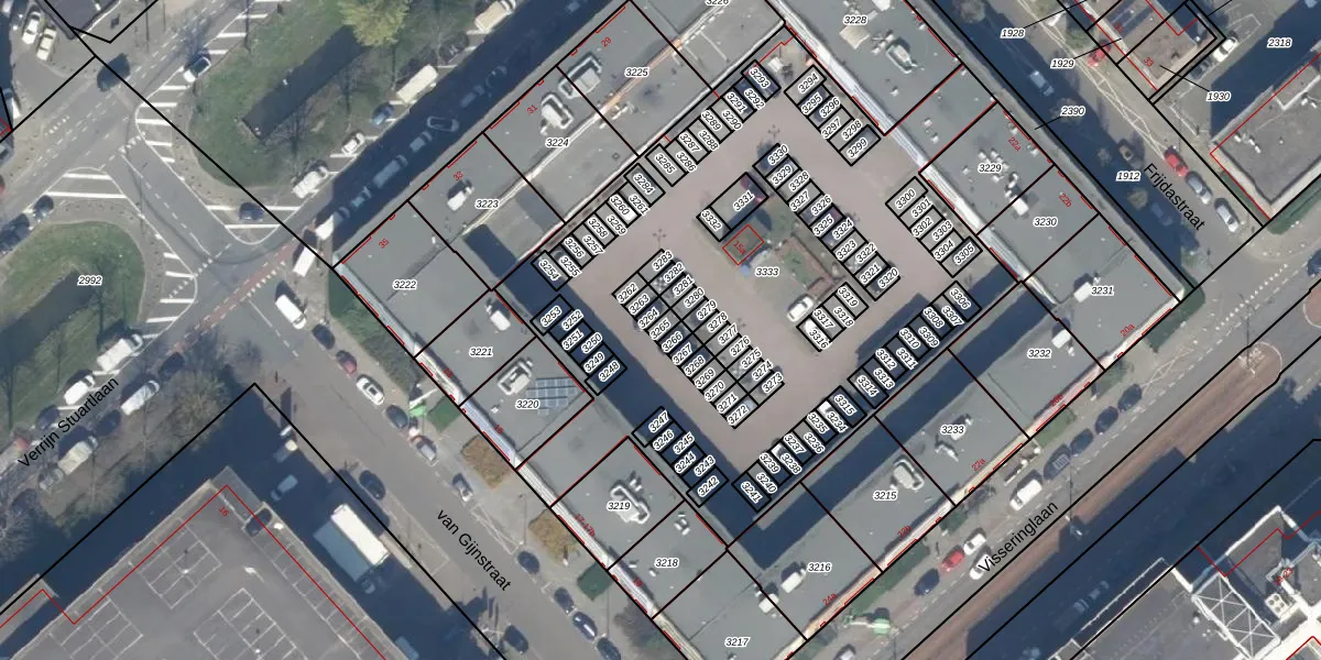 Gebruik de zoekbalk of klik op een perceel om informatie over het perceel te bekijken.