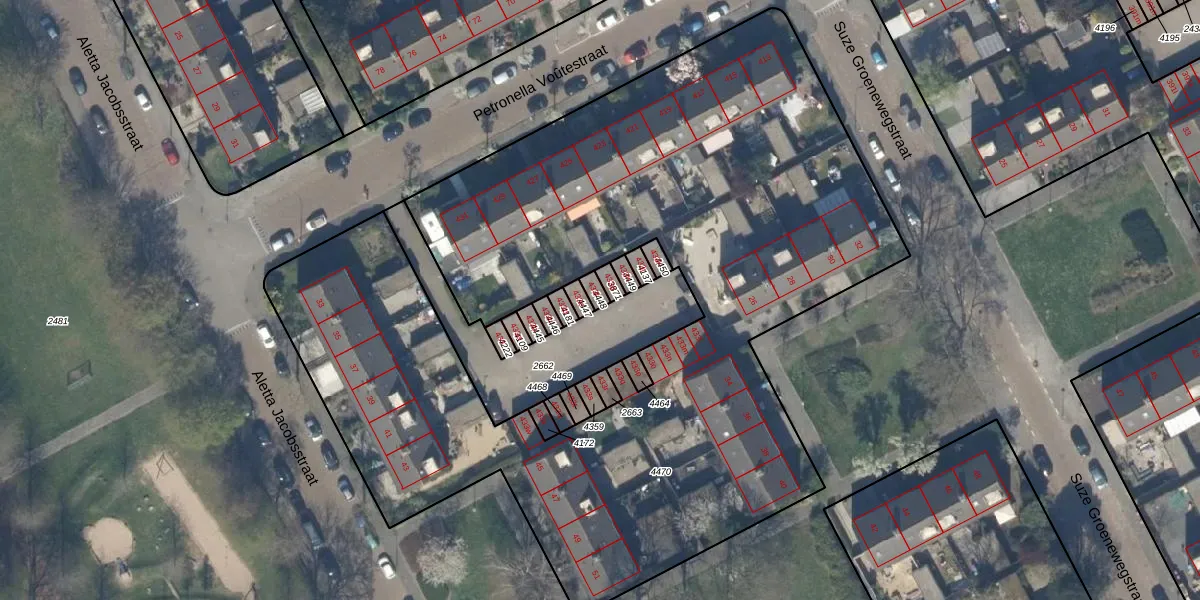 Gebruik de zoekbalk of klik op een perceel om informatie over het perceel te bekijken.