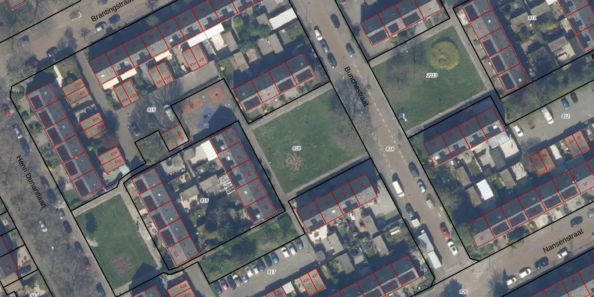 Gebruik de zoekbalk of klik op een perceel om informatie over het perceel te bekijken.