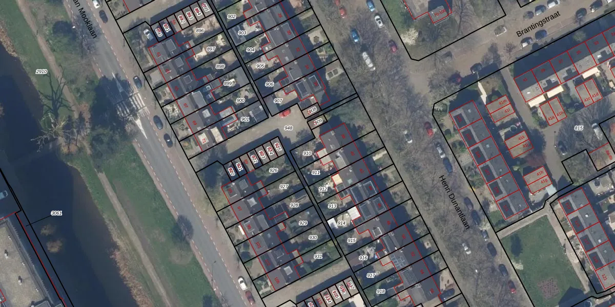 Gebruik de zoekbalk of klik op een perceel om informatie over het perceel te bekijken.