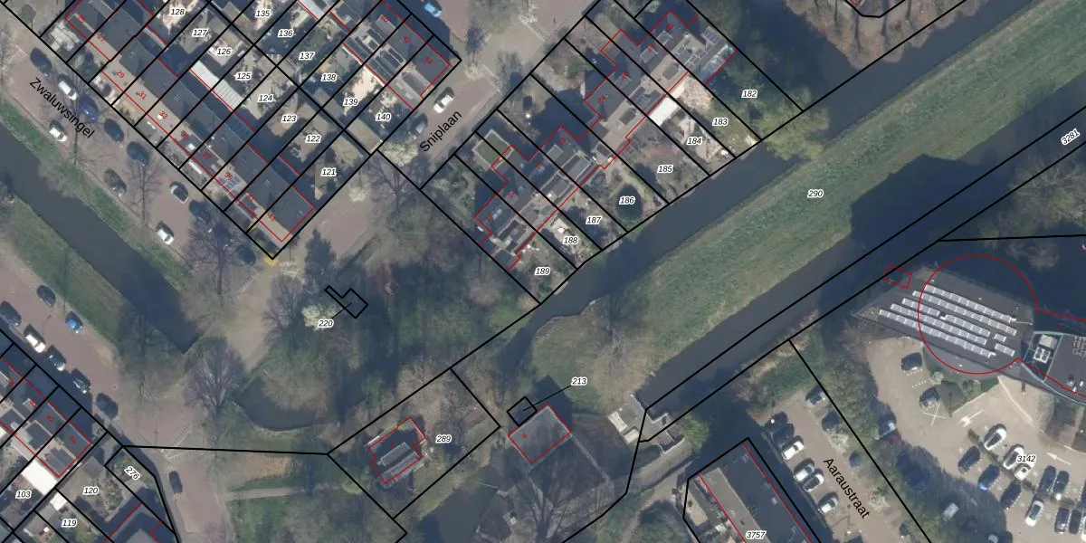 Gebruik de zoekbalk of klik op een perceel om informatie over het perceel te bekijken.