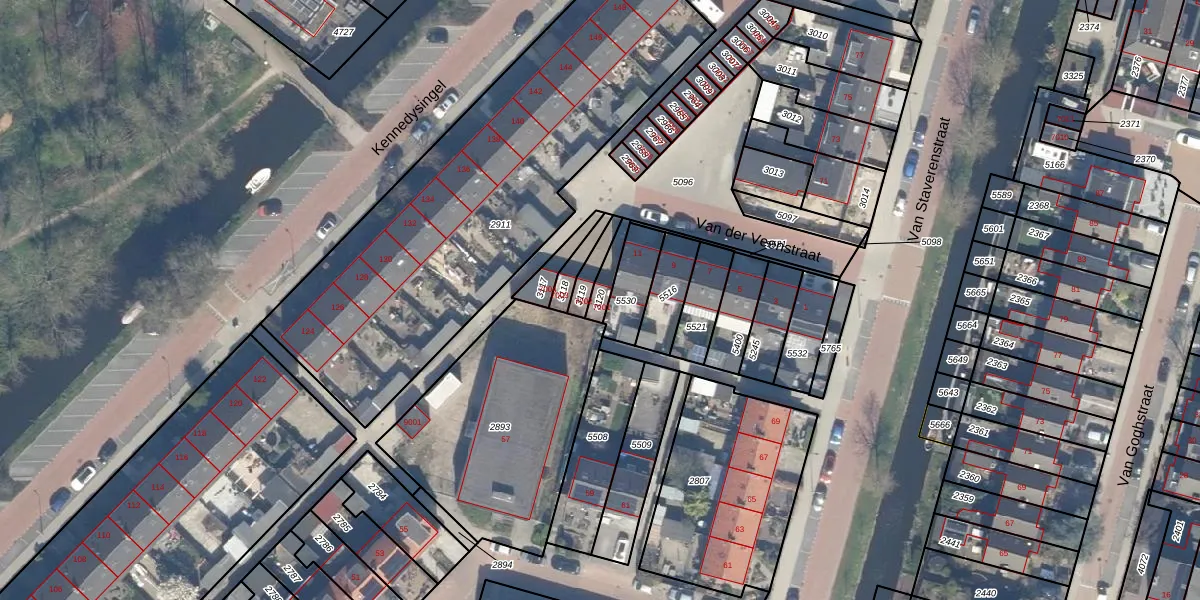 Gebruik de zoekbalk of klik op een perceel om informatie over het perceel te bekijken.