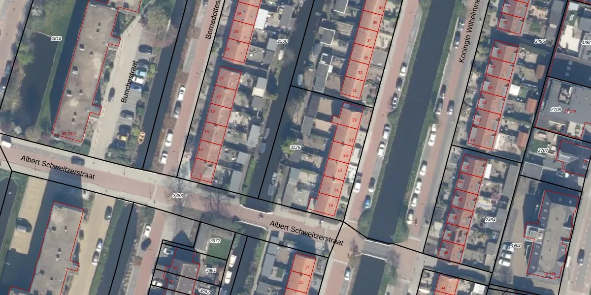 Gebruik de zoekbalk of klik op een perceel om informatie over het perceel te bekijken.