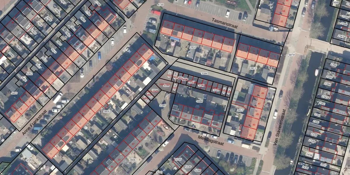 Gebruik de zoekbalk of klik op een perceel om informatie over het perceel te bekijken.