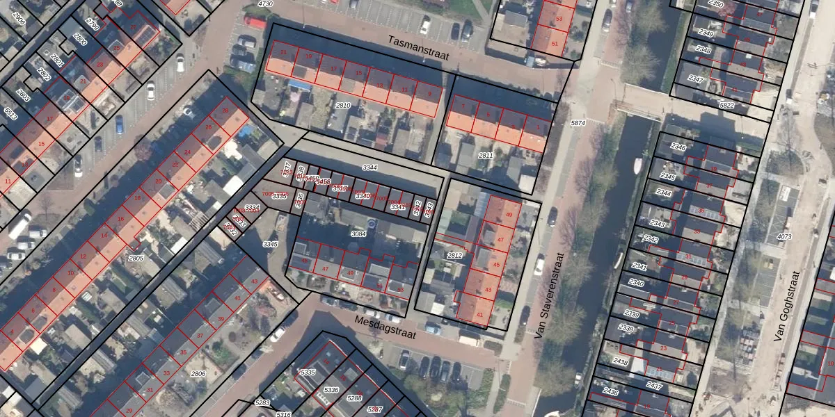 Gebruik de zoekbalk of klik op een perceel om informatie over het perceel te bekijken.