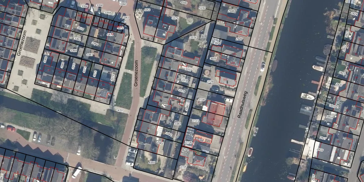 Gebruik de zoekbalk of klik op een perceel om informatie over het perceel te bekijken.