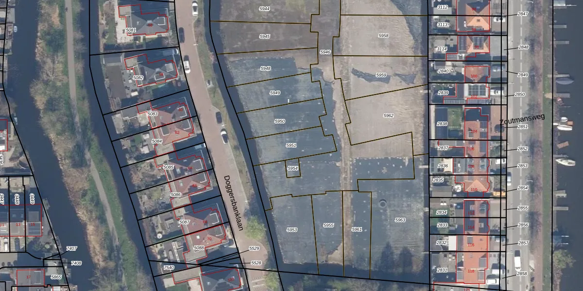 Gebruik de zoekbalk of klik op een perceel om informatie over het perceel te bekijken.